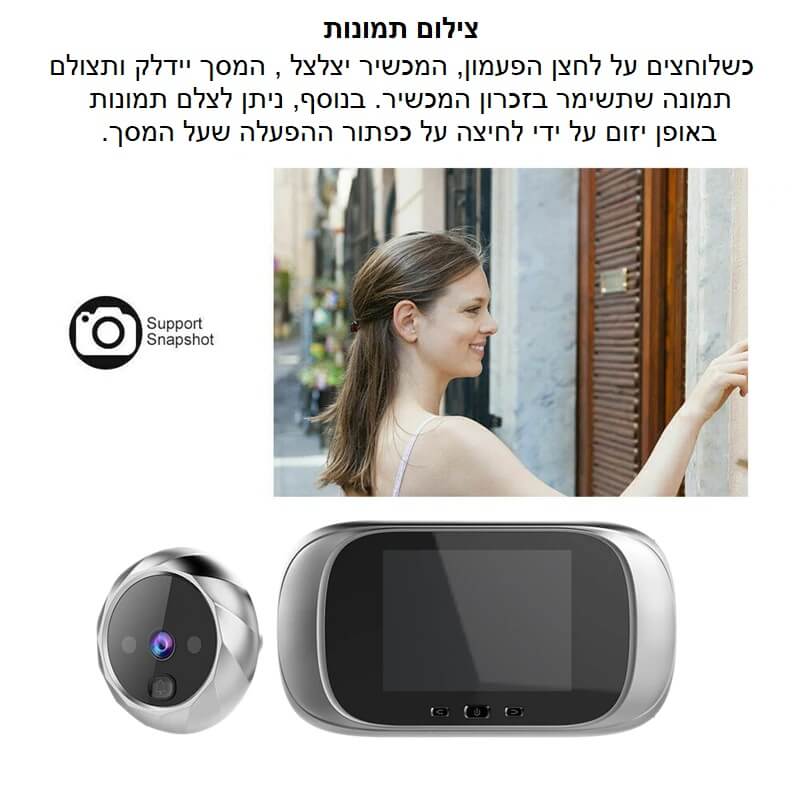 עינית דיגיטלית קלה להתקנה, תפעול פשוט, מצלמת תמונות, הוראות בעברית