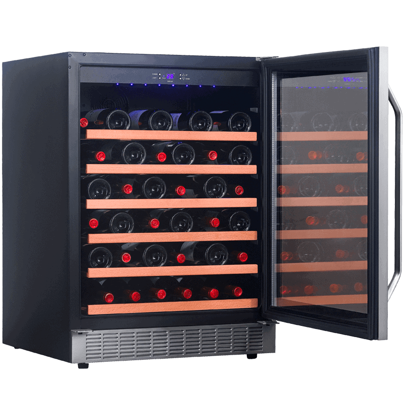 מקרר יין בנפח 146 ליטר,בנוי,מיועד לאחסון של עד 45 בקבוקי יין אדומים או לבנים. מקרר יינות המתאים לעסקים או חובבי יין "כבדים",או לשימוש ביתי.